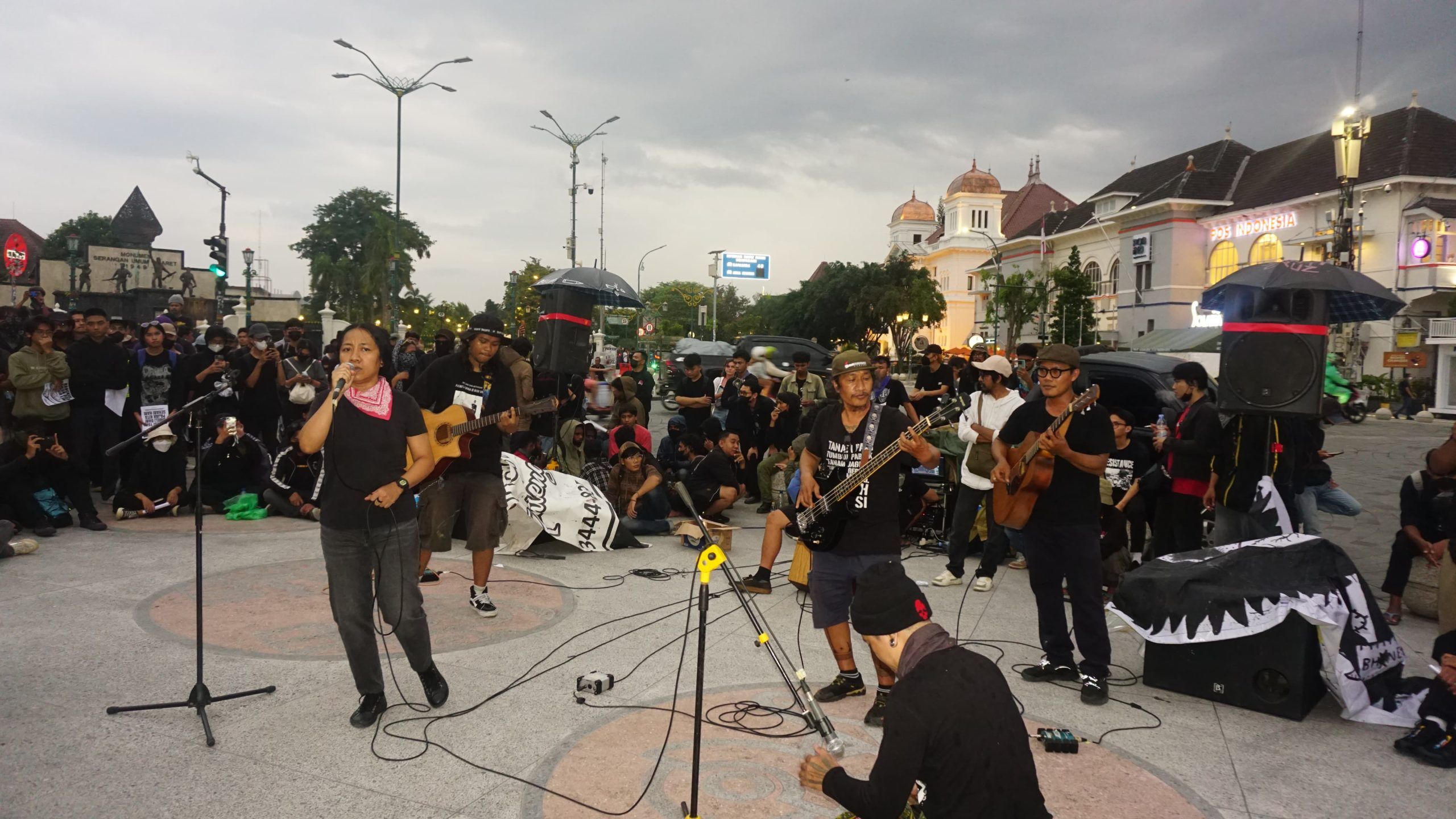 Mengusung tema “Negara Sedang Gawat, Bangun Solidaritas Rakyat”, seni diangkat sebagai instrumen protes terhadap kebijakan-kebijakan yang dinilai tidak prorakyat. Rasa ketidakpuasan ini kemudian dituangkan dalam bentuk spanduk, puisi, aksi teatrikal, hingga lagu yang berisi sindiran.