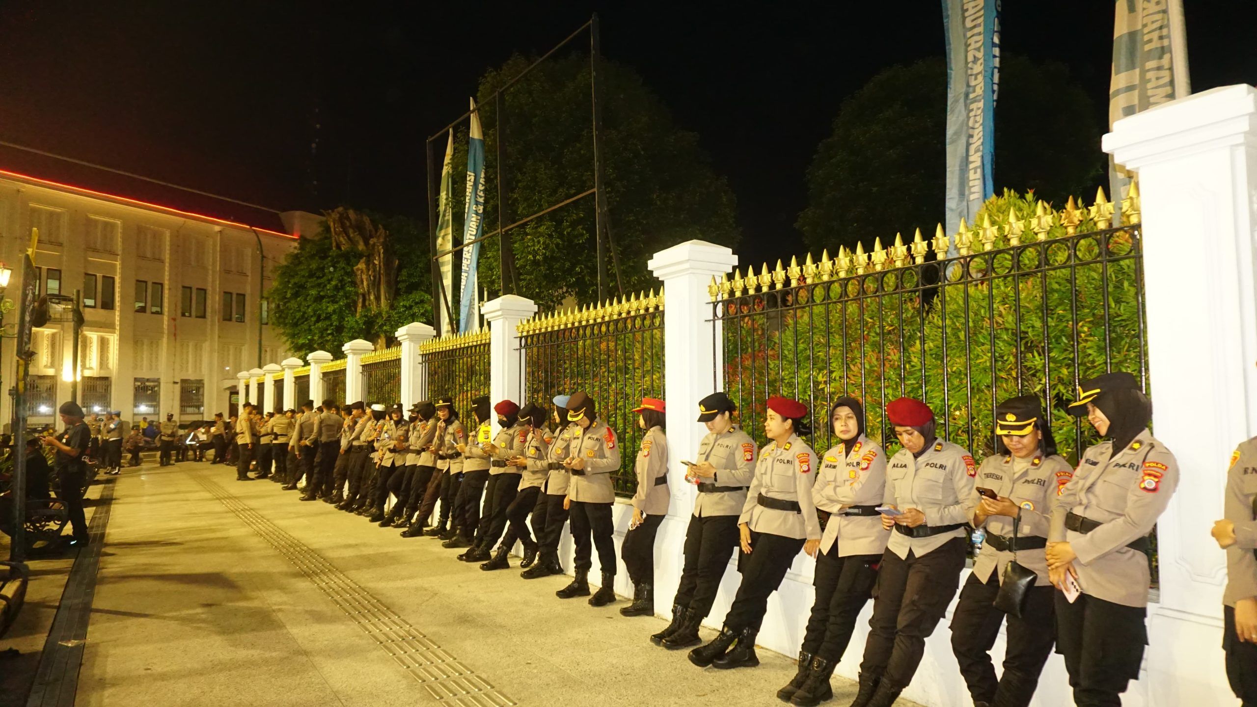Sebelum aksi dimulai, kawasan Titik Nol Kilometer Yogyakarta sudah dipenuhi oleh barisan polisi sampai dengan perempatan Jalan Reksobayan. Puluhan mobil pengangkut polisi dan kendaraan taktis, seperti rantis lapis baja dan water cannon, disiagakan sepanjang Jalan Panembahan Senopati hingga Perempatan Gondomanan. Salah satu personel tim medis menilai bahwa skala pengamanan ini tidak proporsional. Ia menilai kehadiran polisi dalam jumlah besar justru menciptakan ketegangan yang tidak perlu. “Saya rasa [pengamanan dalam jumlah besar-red] itu berlebihan karena selama ini [aksi protes-red] di Jogja, kan, ga pernah sampai ricuh banget, terutama sebagai medis yang pertama kali [berpartisipasi-red], jadi tertekan karena kalau ada apa-apa gimana? Ga cuma keselamatan orang lain, tapi keselamatan diriku juga,” ujarnya.